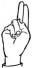 На ћирилици написано АНДРИЈА АМАНОВИЋ састоји се из 15 слова [?]. Исписано ћириличном једноручном азбуком за глувонеме: